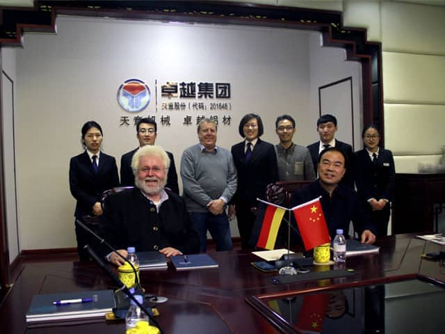 3月15日,德國外賓Dipl.lng. Bernhard Heid和Wolfang Foerster到天意機械參觀洽談合作,天意機械董事長劉洪彬,外貿部負責人董偉、李芳芳等進行了熱情接待。