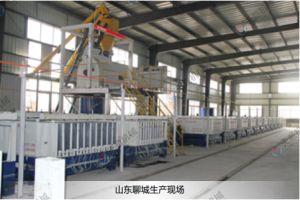 TYF-16B型復合墻板生產線,是我公司自主研發的固定式復合墻板生產線,該生產線投入小,生產產品品質量好,產品成型效率高,可生產多種類型的墻板,配有大型攪拌系統、移動注資系統、整體出板碼垛系統等自動化的配置,還配有骨料的輸送和計量系統。減少了勞動強度,工人操作更簡單方便,提高了生產效率。